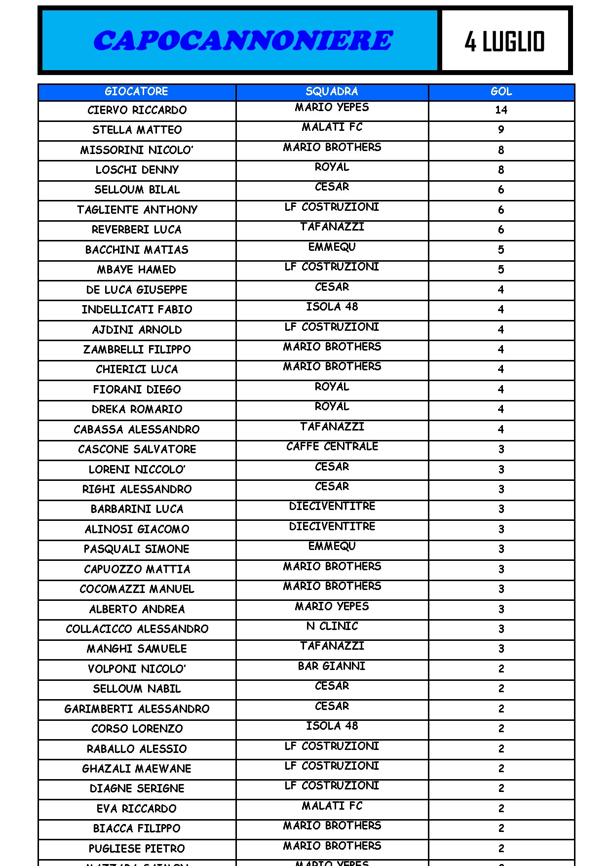 CAPONANNONIERE: LOSCHI DENNY 13 GOL (ROYAL GROUP)